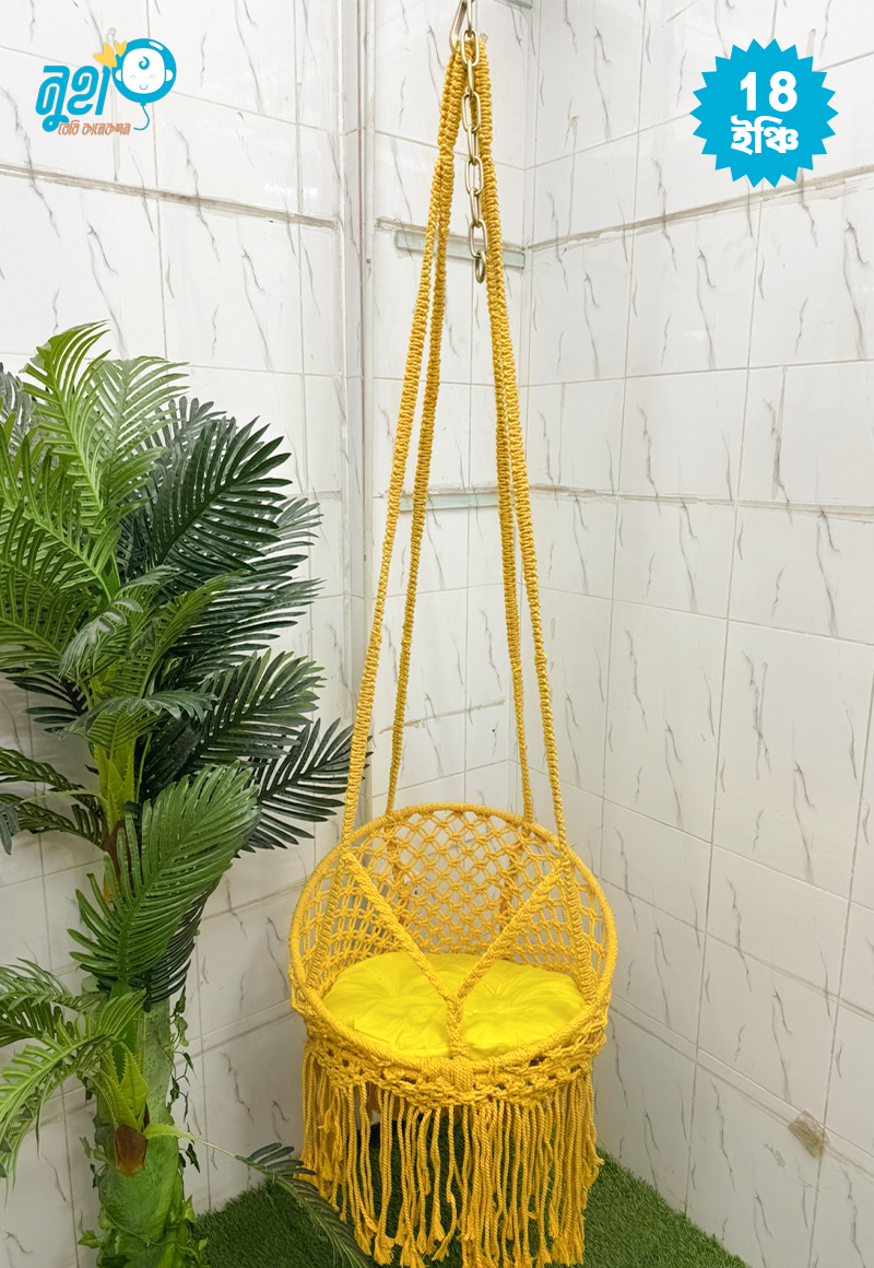 • ধরণ: ম্যাক্রোম হ্যান্ডক্র্যাফটেড চেয়ার দোলনা। • আকার: ১৮ ইঞ্চি (প্রশস্ত সিট)। • উপাদান: উচ্চমানের কটন রোপ এবং শক্তিশালী মেটাল ফ্রেম। • সেট: ১টি দোলনা, ১টি বসার গদি, ঝুলানোর S অ্যাঙ্কর, শিকল ও রয়্যাল বোল্ট।